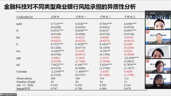會上,吳蝶等5人分别作了題為《金融科技發展對商業銀行風險承擔的影響研究》、《區域金融發展對企業R&D投入的影響》、《綠色債券的漂綠行為研究—以北務水控GN001為例》、《金融結構與技術創新的協同度及其對經濟增長的影響》、《金融結構與技術創新的協同度及其對經濟增長的影響》的工作論文報告,點評老師們建議各報告人規範論文書寫格式、優化研究模型、明确樣本選取理由;提高問題與假設相關度、并從現實和學術意義方面展開對研究意義的論述。本次論壇,點評老師和參會老師們認真細緻地指出了報告人論文中存在的問題,并給出極具建設性的意見,讓與會的老師和同學們在熱烈的學術交流中收獲頗豐。