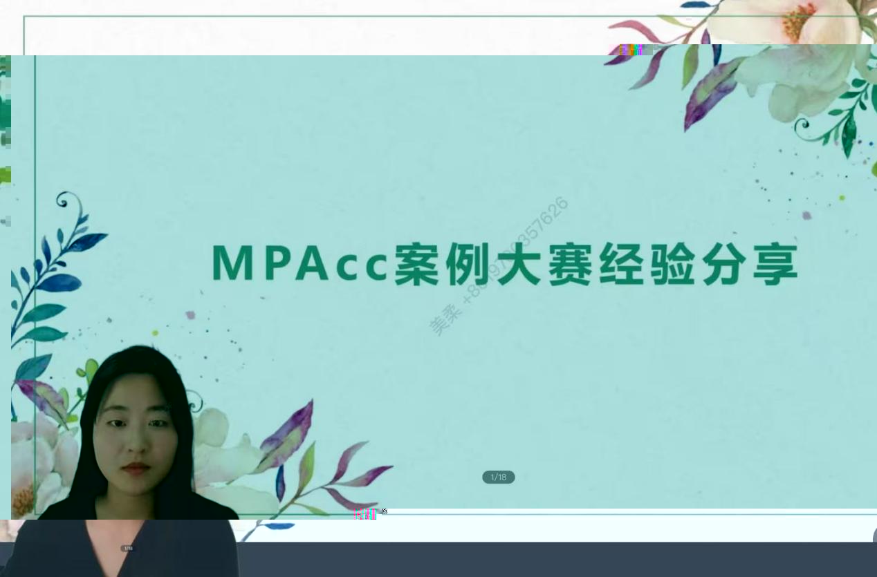 在講座最後,南華大學研究生溫琳豔同學從團隊配置、賽前準備、時間規劃、标題凝練、思維導圖、案例内容設計與美化等方面分享了她參加全面MPAcc學生案例大賽的心得體會,為同學們提供了寶貴的實踐經驗,也為即将參賽的同學注入了信心和動力。