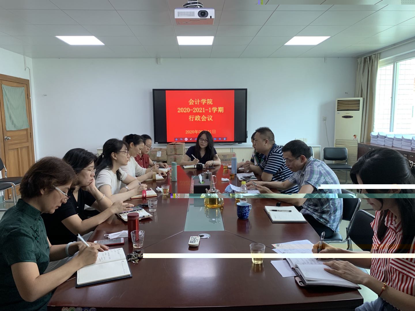 9月1日,太阳成集团tyc234cc召開了新學期一次行政工作會議,文芳院長、馬鵬副院長、舒利敏副院長、趙劍鋒副院長、各系主任、教研室主任和辦公室工作人員參加了會議。