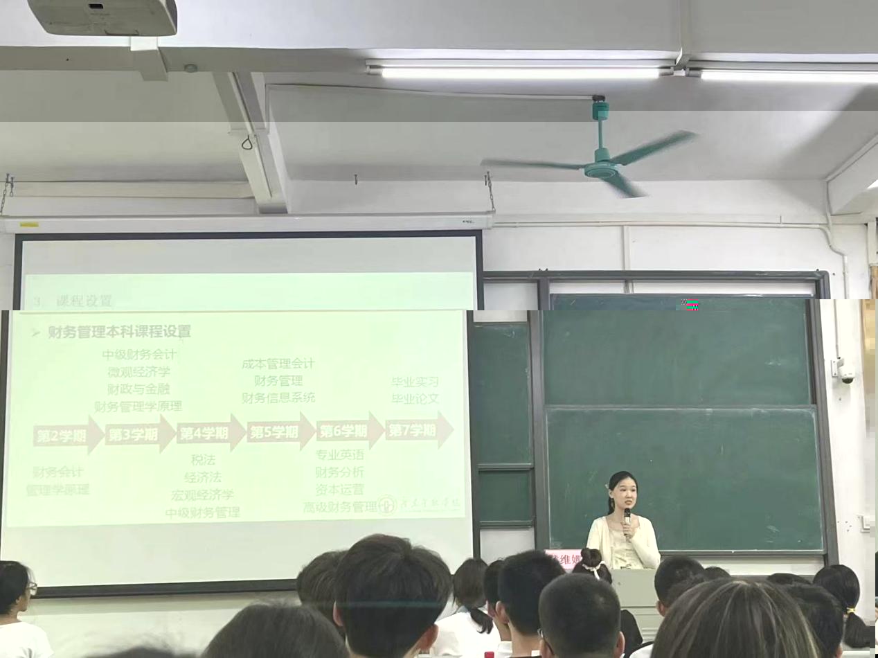 在财務管理專業見面會上,黃維娜博士為24級财務管理專業新生詳細介紹了财務管理專業的内涵,包括專業知識體系、核心能力培養以及理論與實踐的結合需求。黃博士還闡述了大學四年的課程規劃,指導學生如何有效地學習課程,以及各階段應如何為考取相關證書做準備。在就業市場人才需求方面,黃博士強調了創新能力、實操經驗和跨領域知識的重要性。她建議學生們在學習過程中注重實踐,在大一大二打下堅實的專業知識基礎上,積極參與實習和項目,以提升自身的競争力。此外,黃博士還現場解答了學生們關于學習和未來就業的相關疑問,幫助新生們更好地規劃大學生涯和職業發展路徑。講座取得了良好的效果,同學們紛紛表示受益匪淺,對财務管理專業有了更深入的了解和認識。