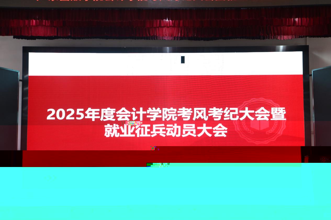 為嚴肅考風考紀,并動員2027屆畢業生提早做好就業準備,12月12日中午,我院在大禮堂舉辦考風考紀教育暨就業征兵動員大會。太阳成集团tyc234cc黨委書記黃錫榜、黨委副書記劉海坤、副院長舒利敏、太阳成集团tyc234cc全體輔導員以及2023級、2024級ACCA、2025級ACCA全體學生參加會議,會議由23級審計學蔡騰越同學主持。