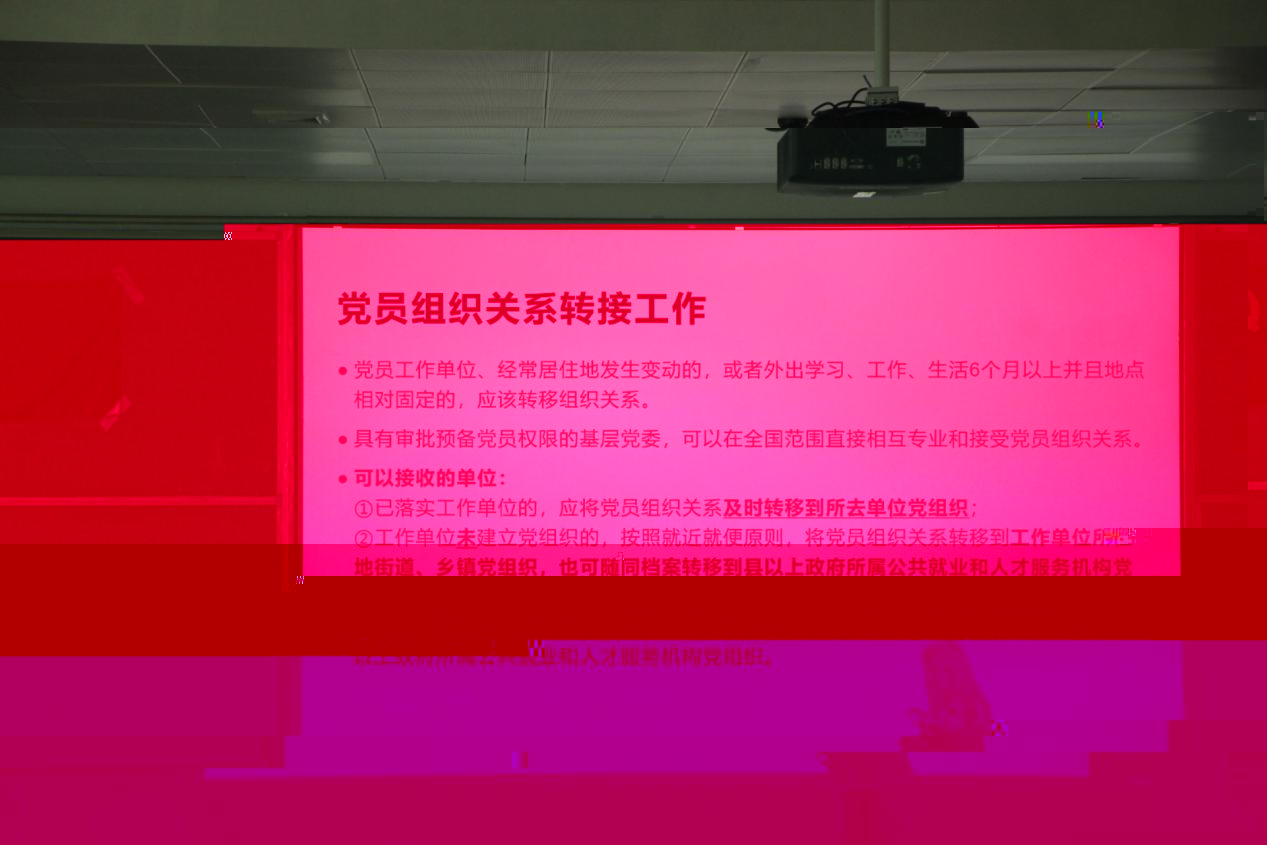 盧倩怡老師通過“黨員組織關系管理要求”向各位畢業生黨員講述,黨員組織關系對于一位黨員的重要性。按照黨章的規定,每個黨員不論職位高低,都必須編入黨的一個支部、小組或其他特定組織,參加黨的組織生活,接受黨内外群衆的監督。讓各位畢業生黨員明确了黨員組織對于黨員的重要性。而後對“黨員組織關系轉接工作”進行了細緻的講解,使畢業生黨員們對黨員組織關系轉接有了更深刻的理解。